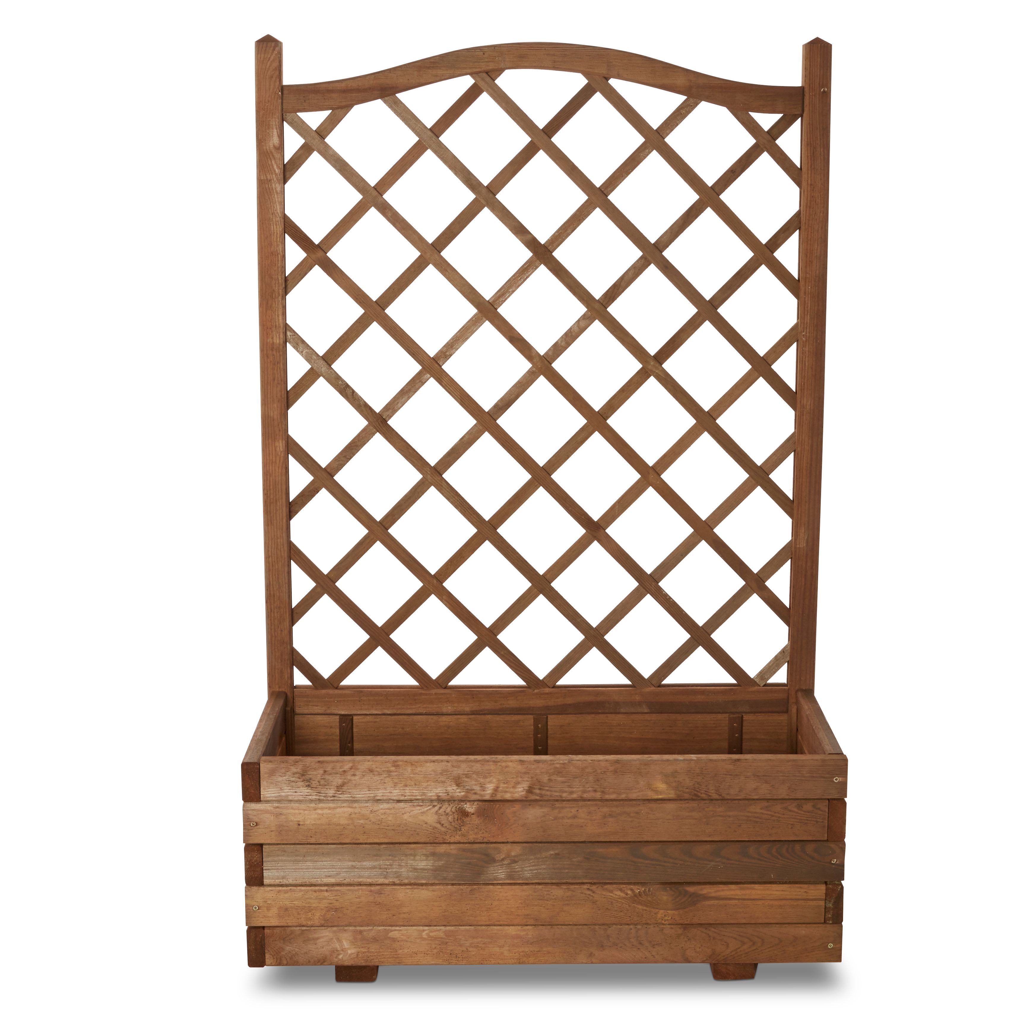 Bopha Brown Wooden Rectangular Trough with Trellis 31cm